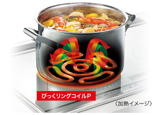 また、業界で初めて電子レンジをIHに搭載したモデルを発売するなど、IHクッキングヒーターの技術開発をリードしています。
