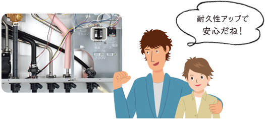 また、貯湯ユニット内の配管を銅管からステンレス化することにより耐腐食性と耐久性がさらに向上しました。