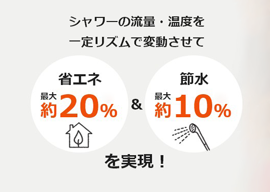 シャワーの温度と流量を同時に変動させることにより、通常シャワーと比較して省エネ最大約20%、節水最大約10%を実現することができました。