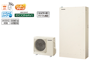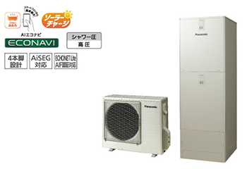 高圧給湯による快適なシャワーと、AIエコナビやソーラーチャージなどの省エネ機能を搭載。